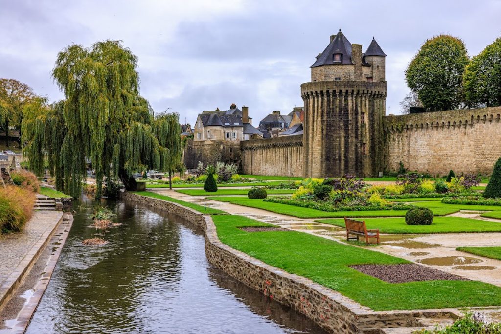 Vannes et sa vieille ville intra-muros avec ses remparts, son lavoir et son port de plaisance.
